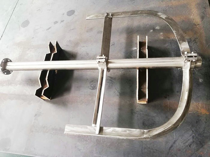 常規(guī)的攪拌形式有錨式、槳式、渦輪式、推進(jìn)式、框式等,攪拌裝置在高徑比較大時(shí),可用多層攪拌槳,特殊產(chǎn)品甚至?xí)褂幂^為復(fù)雜的MIG式攪拌。