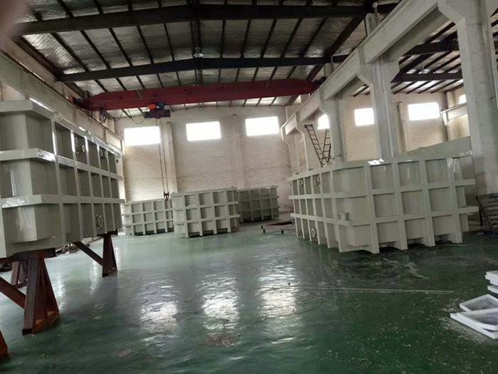 一種工業廢水降解槽,包括鼓泡池,所述鼓泡池內設有隔板,所述隔板將所述鼓泡池分割為若干分布于同一直線上的水槽,所述水槽設有溢流口,相鄰的水槽中的溢流口沿垂直于溢流槽分布方向的方向錯開,溢流口部位距離水槽底面的高度為6~13厘米。水槽分布于同一直線且溢流口彼此錯開,能夠優選防止廢水流過水槽時產生回流現象。水槽內的水深只能為6~13厘米。更容易混合均勻,且不容易生產噴濺現象。